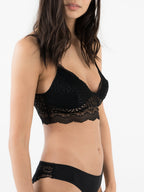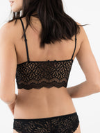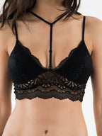 Edgy and daring. Scallop lace bralette featuring a detachable strap at the centre front and skinny adjustable shoulder straps.